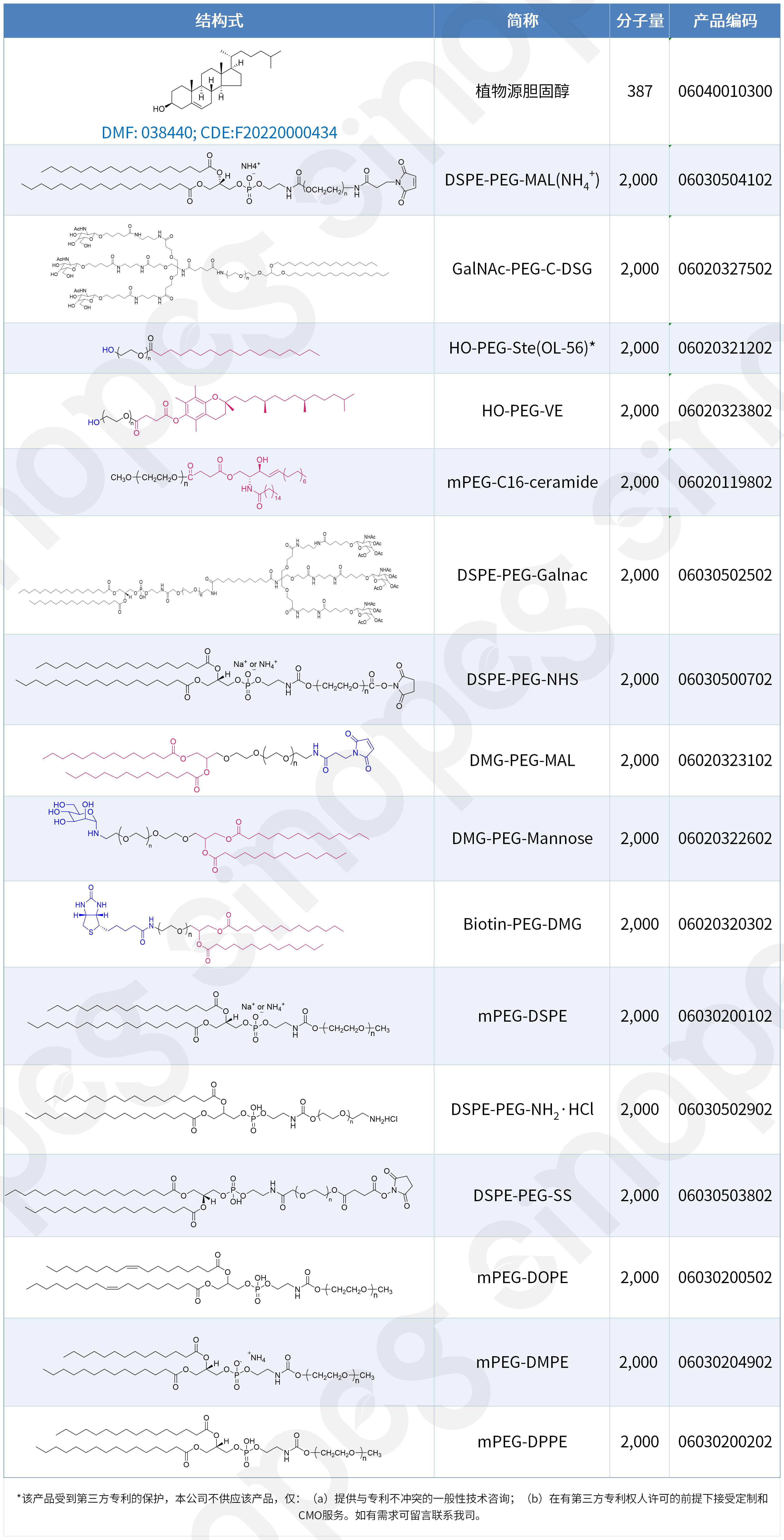 DHA-1, SNP24-1, SNP25-1, SNP26-1, and others are cationic lipids independently developed by Sinopeg. They feature high biocompatibility and high transfection efficiency, effectively bypassing existing patent restrictions and providing a reliable, localized alternative for the LNP delivery field.