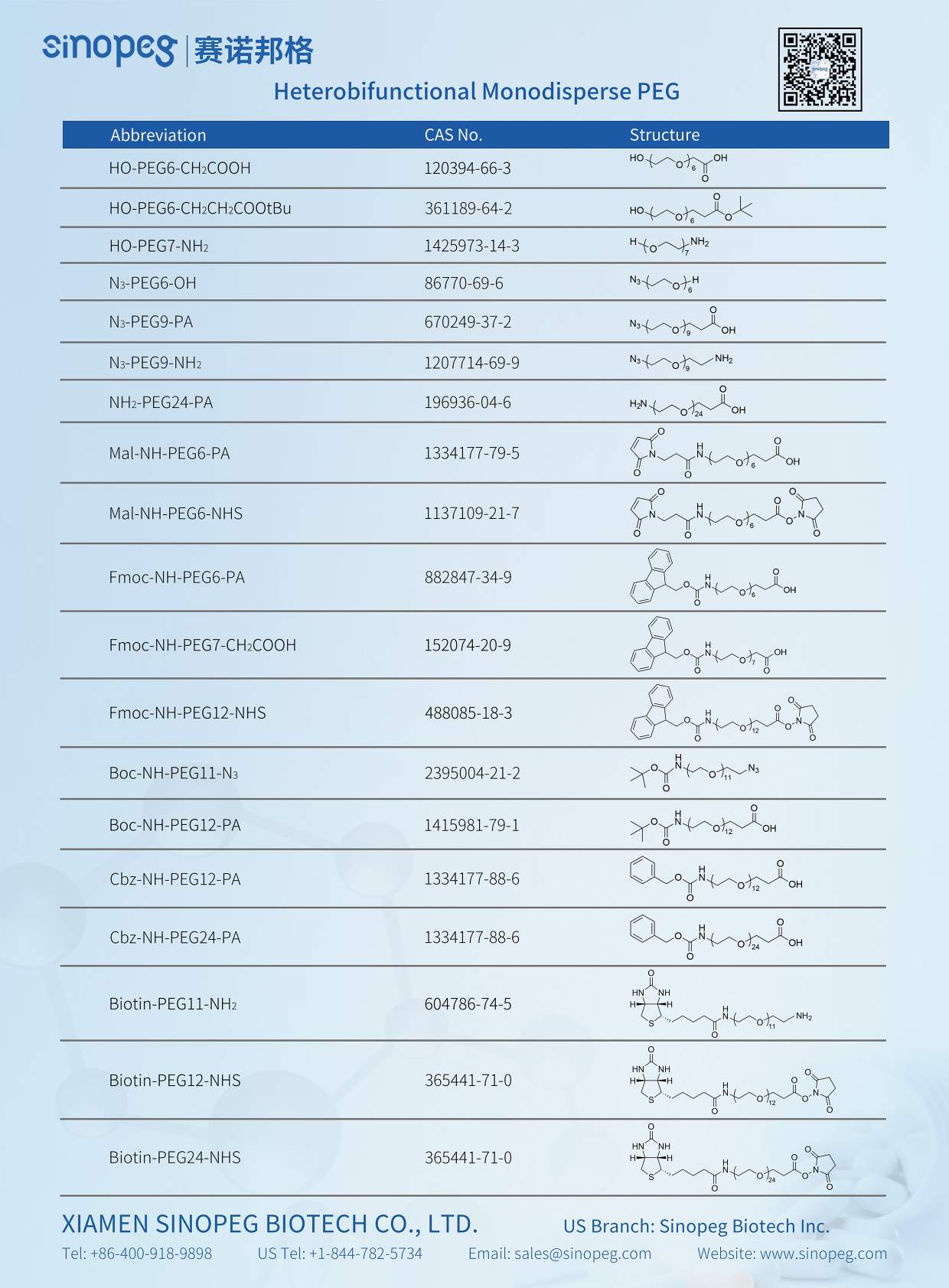 To enhance the stability, solubility, and pharmacokinetics of your radioconjugates, Sinopeg offers high-purity, monodisperse polyethylene glycol (PEG) derivatives. These well-defined PEG linkers ensure improved conjugation efficiency, reduced immunogenicity, and optimized in vivo performance—key factors for developing safe and effective radiopharmaceuticals.